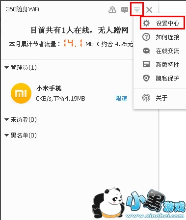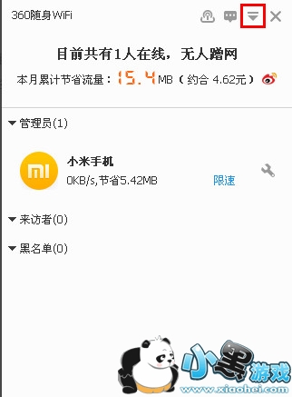 1、首先将360随身wifi插入电脑创建好wifi信号,然后用手机连接到该网络上,手机连接到该网络后,在悬浮框上可以看到1人在线状态。