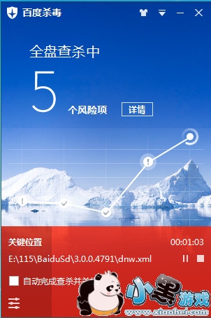 点击全盘查杀,百度杀毒会将你系统仔细的查杀一遍