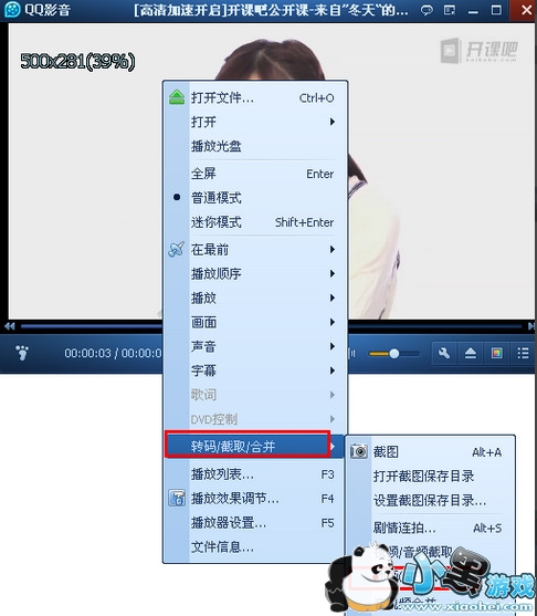 1、首先我们打开QQ影音播放器,然后代开你的要截图的视频文件,然后右击QQ影音播放的视频界面,选择如下图“动画 GIF截取”
