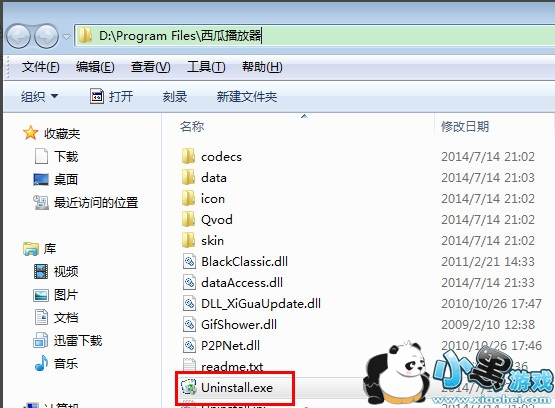 2、打开找到西瓜播放器/西瓜影视安装文件夹目录下面,点击打开“uninstall.exe”文件即可进入卸载界面啦