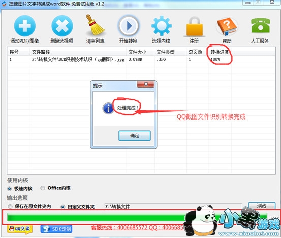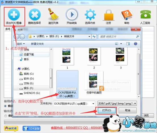 步骤2:打开捷速图片文字转换成Word软件,将qq截图文件添加到软件中。用户可点击“添加文件”按钮进行添加图片,也可直接将图片拖拽至软件中