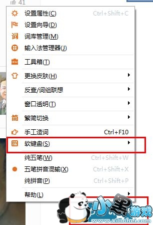 第一步:先呼出极品五笔输入法的状态栏,然后单击鼠标右键,找到软键盘