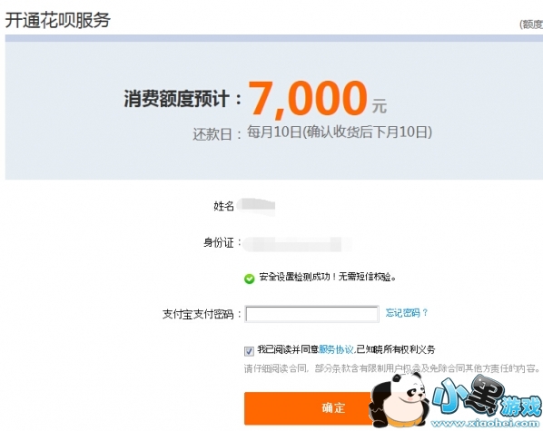 2、填写信息,免费开通花呗服务;