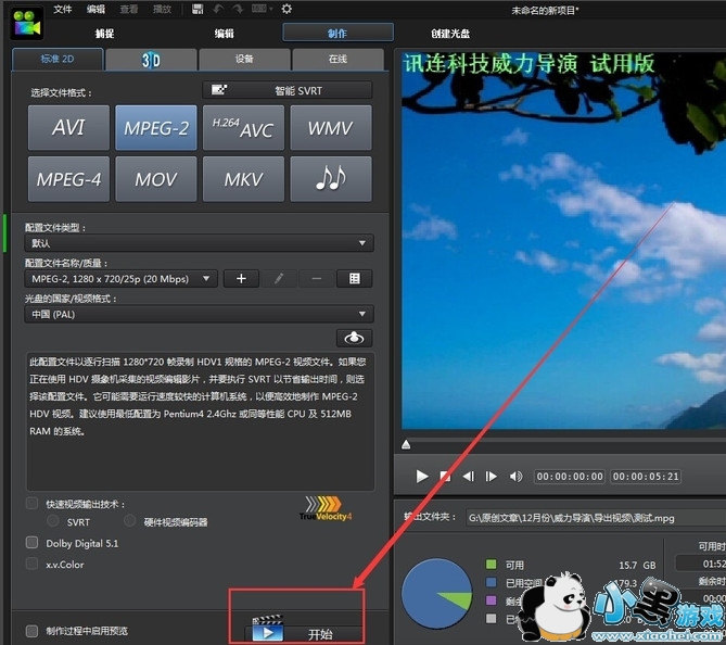 5、然后点击左下角的“开始”,开始输出我们的时间线文件