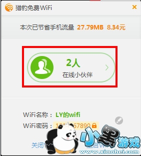 1、在笔记本电脑上面打开猎豹免费wifi。接着选择wifi标记点击这里连接管理,在这里可以看到只有一个设备连接,点击进入