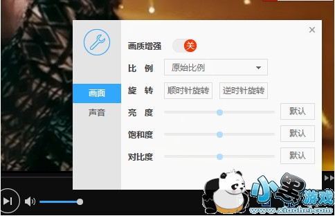 3、调节画面:点击播控条下方的播放效果设置按钮,可以调整画面的比例、亮度、对比度等