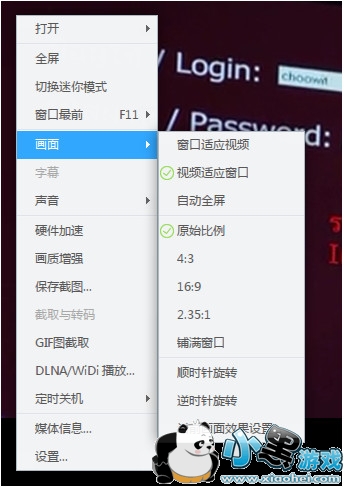 2、调节比例:鼠标单击右键-画面-选择对应的画面比例