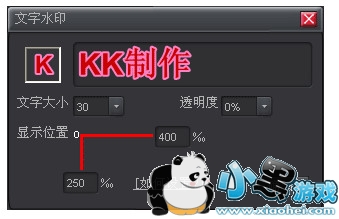 第二步:输入文字内容,设置合适的显示位置,假定 X=400‰, Y=250‰ 录制生成的视频效果如下