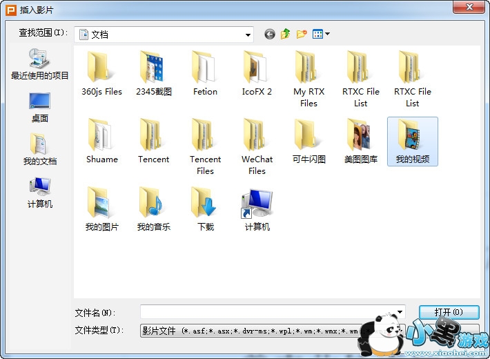 2、在弹出的对话框中选择你要要插入的视频