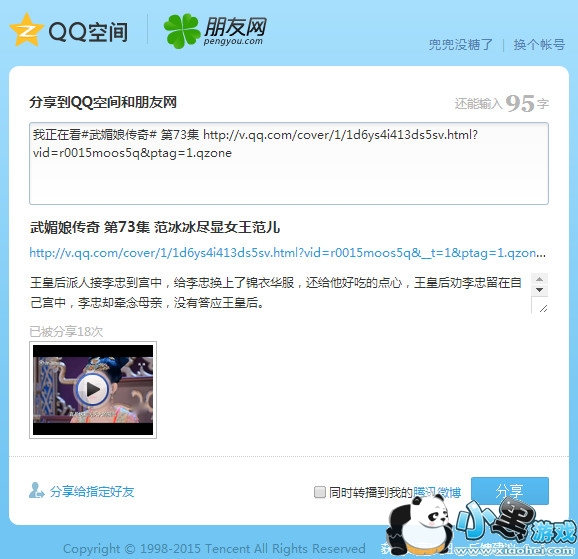 3、选择你要分享的空间或者微博选项,点击分享如果当前你没有登录,那么你要先登录帐号就可以分享成功了