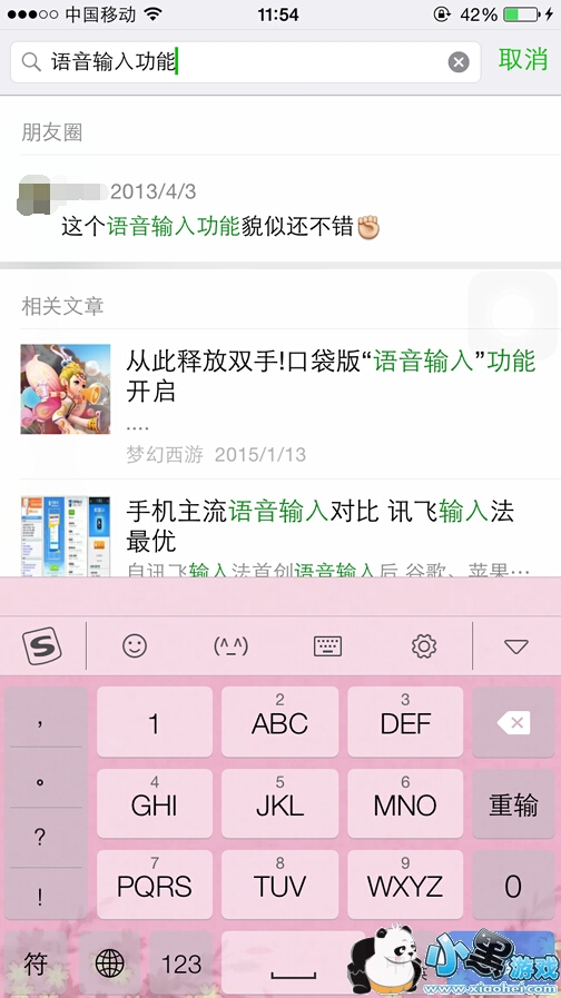 直接登录微信后,在最上方搜索框中输入要找的那条说说大概的内容比如语音输入功能,都不用点搜索,那条要找的说说就直接展示出来了。当然这个方法要记得相关的内容,记住的内容越多越容易定位。