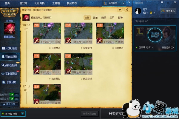 打开lol官方助手,右边选项中有个“我的战绩”,然后再找到主界面中的“荣誉截图”,点击之后即可看到自动保存的精彩击杀截图,将鼠标放到截图上,点击下载到指定目录就可以了!