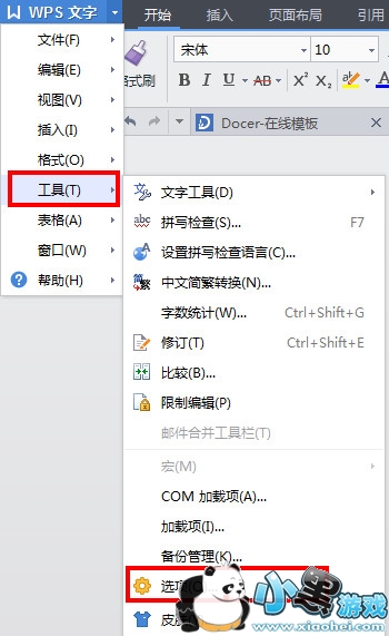 1、首先打开wps,选择wps文字--选项,进入设置页面或者点击下拉“工具”选择“选项”