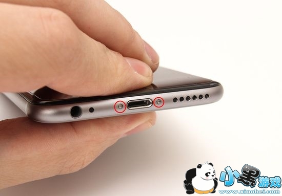 第2步:找到手机充电接口两侧的两颗五角形螺丝。打开iPhone 6你只需要拧开这两颗螺丝。