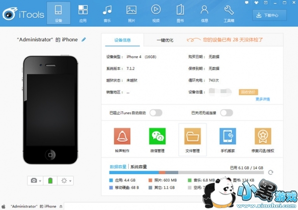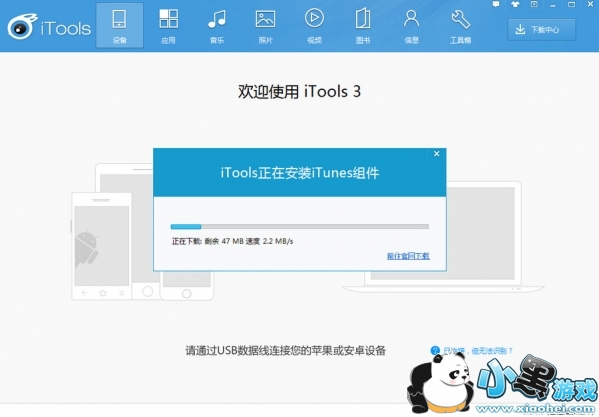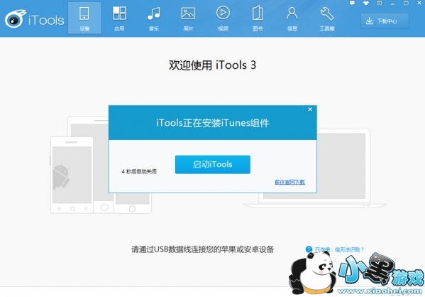 1)将新版iTunes完全卸载后,打开iTools PC端,将设备连接至iTools PC端会提示需要安装iTunes组件,点击【一键安装】后会自动下载安装。(若卸载iTunes组件后未提示“下载iTunes组件”的弹窗,建议您重新前往pc6重新下载最新版安装)