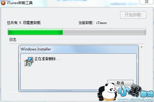 2) 解压后双击运行iTunesUninstaller.exe,点击【开始卸载】,就会开始卸载iTunes组件,耐心等进度条走完即可(PS:期间如果提示某些程序调用了苹果服务,请点击【忽略ignore】)