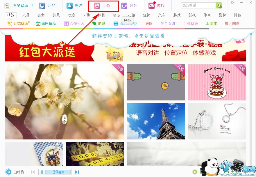 1、首先我们打开搜狗壁纸然后点击“主题”