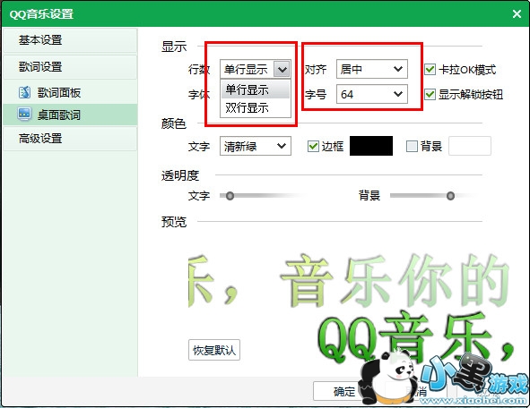 大家想要将歌词拉长,如果是字体加大的话,就直接加大字体。当然我们也可以设置双行显示