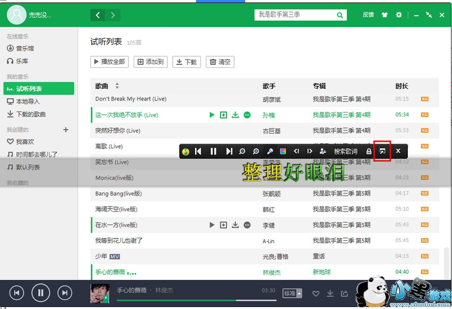1、首先我们打开QQ音乐,点击这个小锁我们就可以锁定它,它就可以一直在最前面,而且固定在一个地方