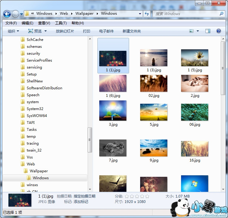1、其实只要知道了路径就很简单了,大家找到系统盘C:/WINDOWS/Web/Wallpaper下的文件,这就是我们的壁纸了
