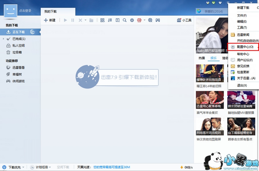 1、首先我们点击迅雷右上角的下拉中的“配置中心”