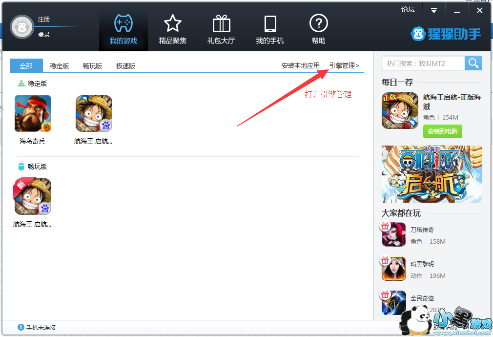 1、打开猩猩助手3.0,根据下图的位置打开引擎管理:
