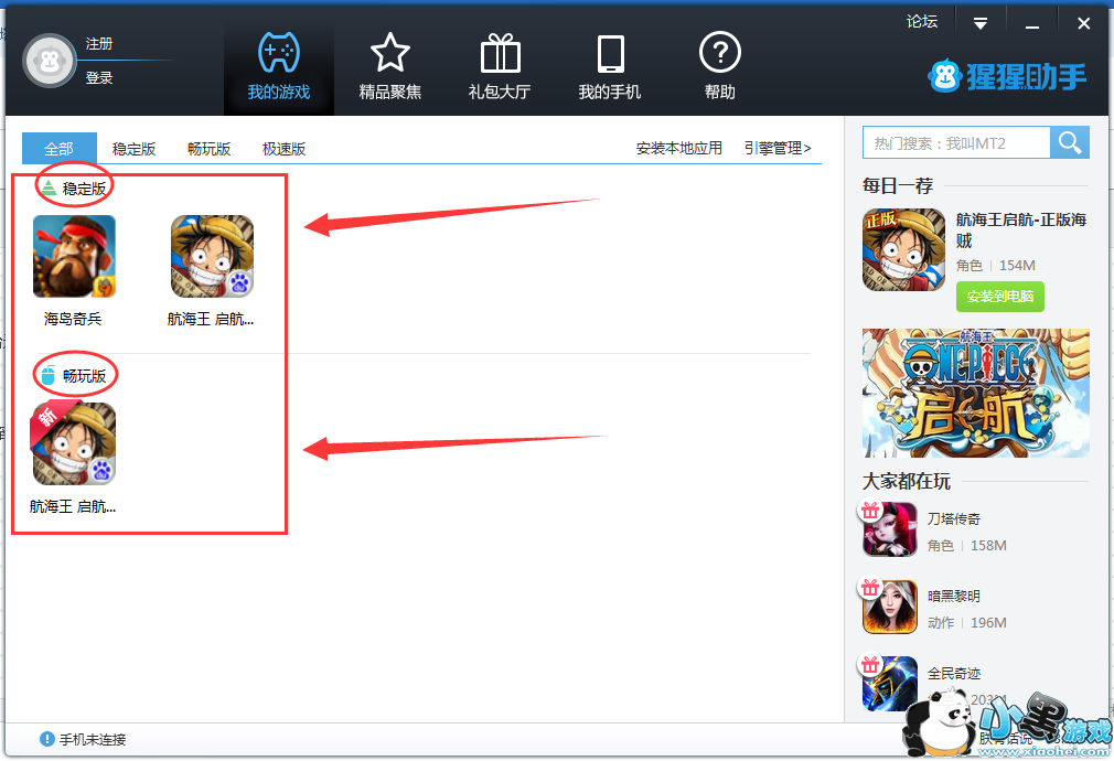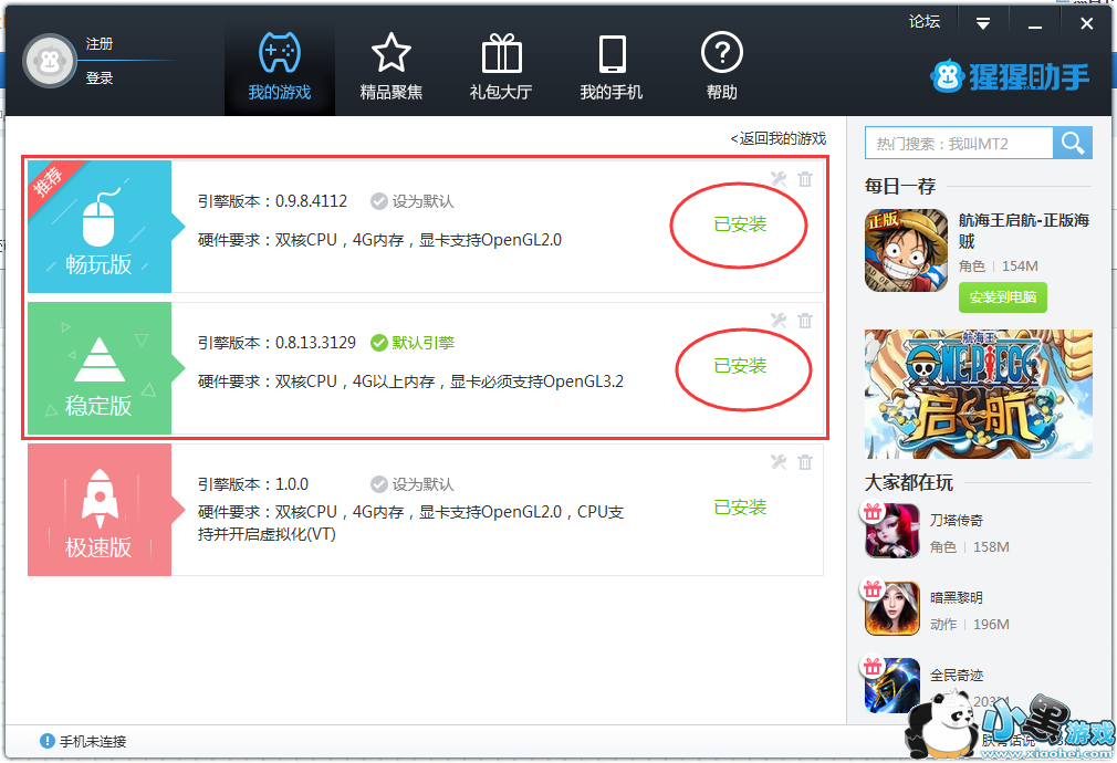 2、进入引擎管理界面后,选择下图两个引擎(稳定版、畅玩版)进行安装(已经安装的则跳过这一步):
