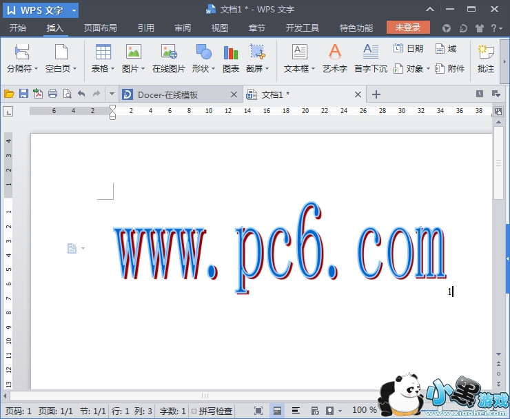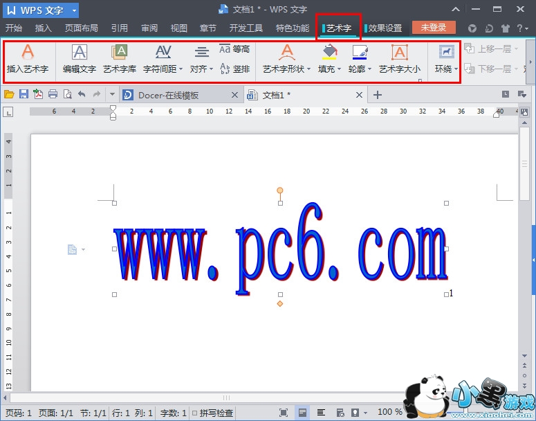 4、大家可以看到我们的艺术字,已经插入。