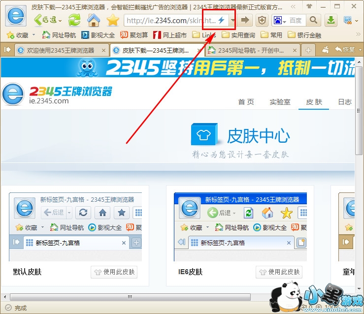 1、首先我们打开2345浏览器,我们可以看到地址栏的小闪电形状的按钮点击它