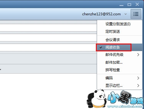 1、首先编辑好需要发送的新邮件,附带好邮件内容和收件人信息等然后点击邮件对话框右上方菜单选项,如图选择”阅读收条”