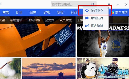 2、然后我们点击右上角的一个下拉按钮,然后选择“设置中心”
