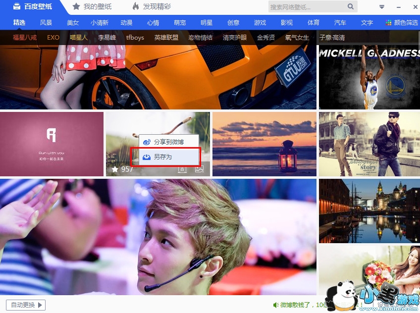 1、首先我们打开百度壁纸,然后我们右击保存图片。