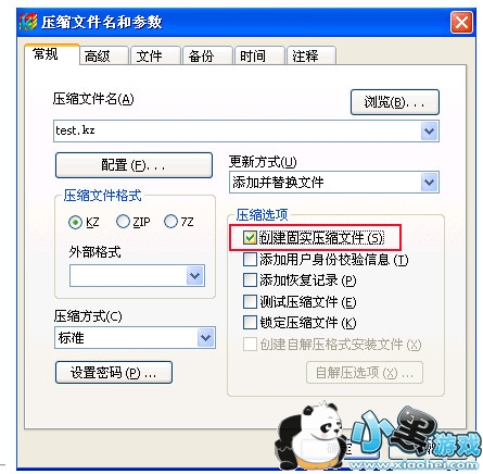 2、弹出“压缩文件名和参数”对话框,勾选“创建固实压缩文件”。