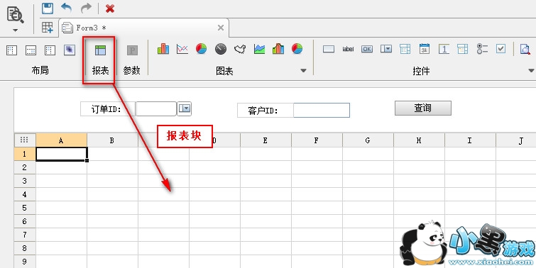 参数面板与控件都已经设置好之后,点开报表块里面的触笔按钮,进行报表块编辑界面。