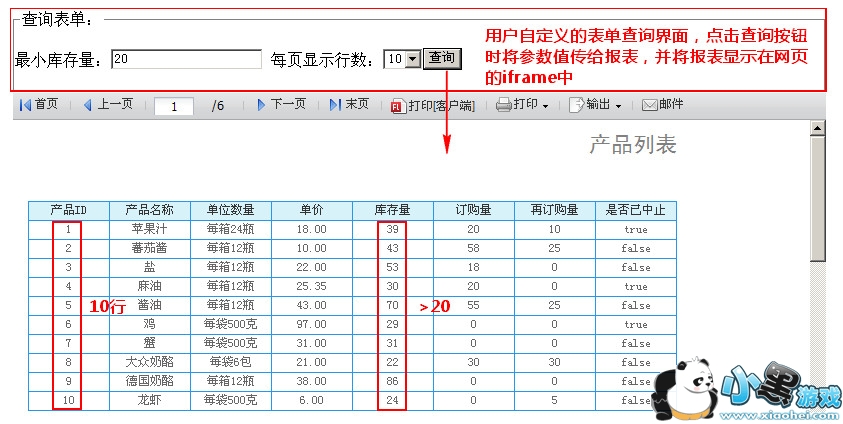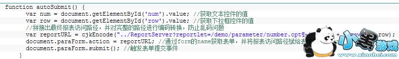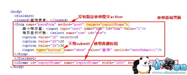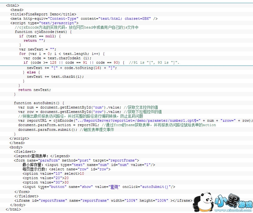 如该例中定义form表单时没有指定action,target的值为嵌入报表的iframe名字。