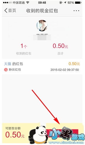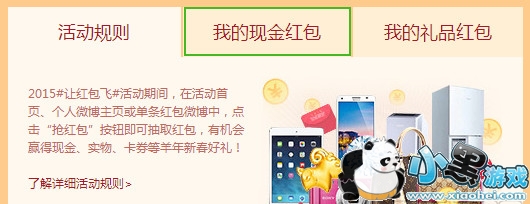 1、1.打开“让红包飞2015“活动页面,点击【我的现金红包】