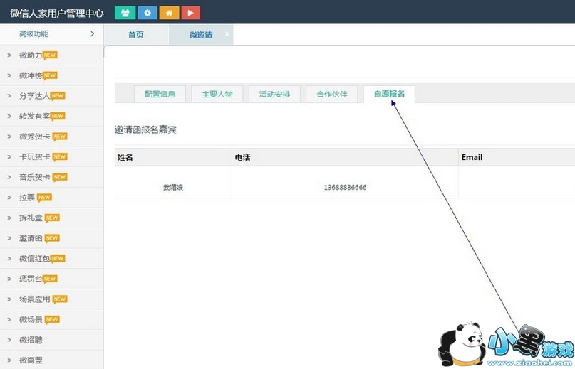 5、点击上方的活动安排,合“作”伙“伴”,自“愿”报“名”等按钮,填写里面的具体项。