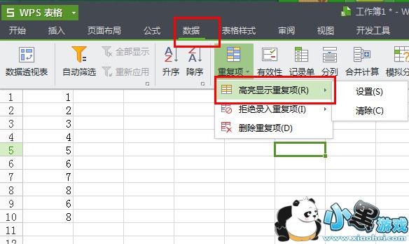 1、首先我们打开wps表格,然后点击数据==重复项===高亮重复项==设置