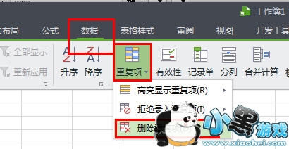 3、选中要查找重复项的表格范围——点击菜单栏“数据”——点击格式栏“重复项”==删除重复项