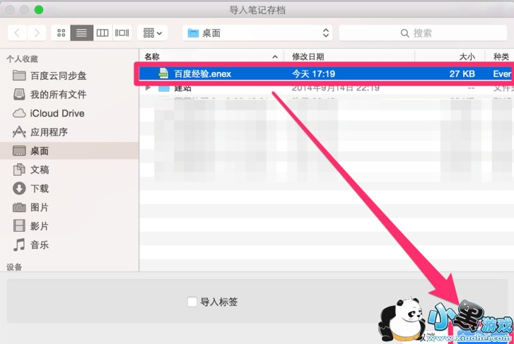 2、此时从弹出来的文件选择器中找到并点击选择需要导入的笔记文件,然后找到窗口中的“打开”按钮进入下一步。