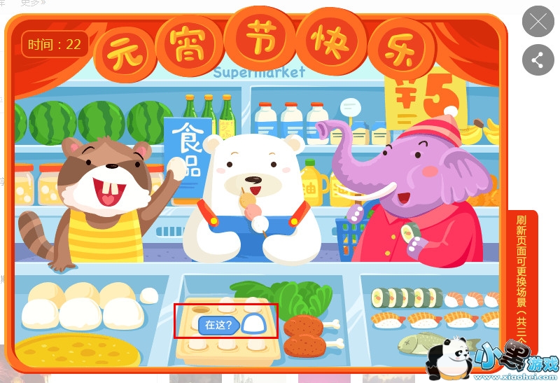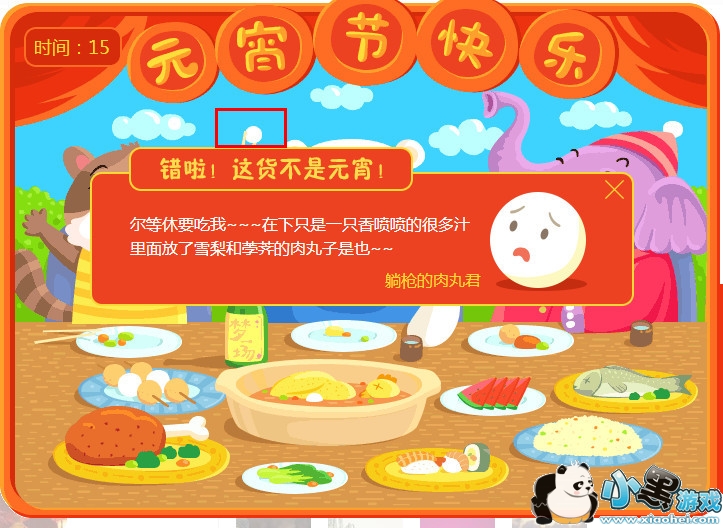 3、进入之后我们选择白色的像元宵的东西点击,游戏一共有3个场景,每个场景3次找元宵机会。