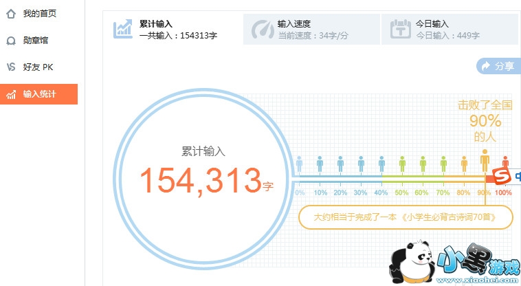 5、点击输入速度的统计,可以看到自己的打字速度统计