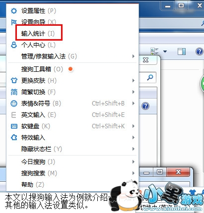 2、在搜狗输入法工具栏中右键单击弹出右键菜单,选择输入统计选项进行单击