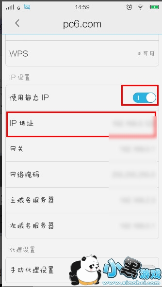 2、进入后我们打开“使用静态IP”的开关,然后点击“IP地址”