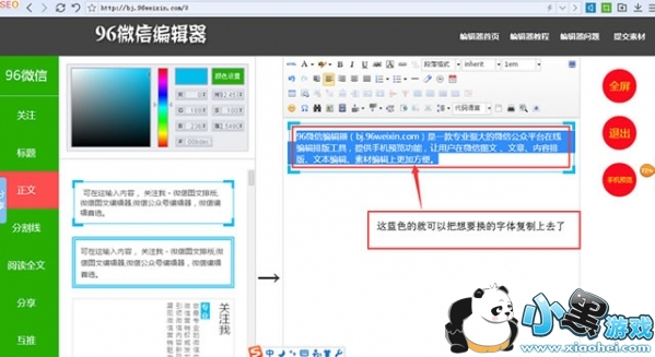 第六、出现蓝色的,大家可以用Ctrl+C键直接复制就行了,复制到微信公众平台素材编辑框里面就了,