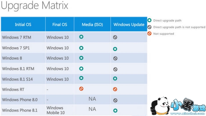 其他都需要先升级到 Windows 7 SP1 或 Windows 8.1 S14,再升级到 Windows 10