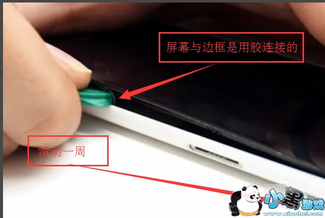 2、由于屏幕与机身是用胶连接在一起的,所以使用拨片从边角处滑动一周就可以将屏幕与机身分离。需要注意的拨片不能插得太深,以免伤及内部排线或者其他零件