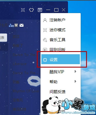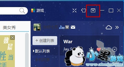 1、打开酷我音乐,点击右上角的倒三角按钮。