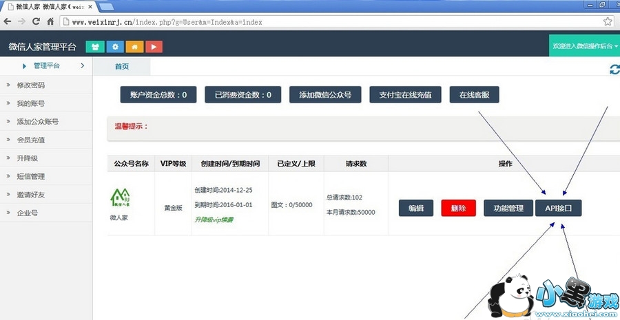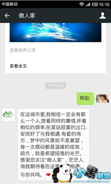6、完成了上述步骤,在手机上用微信给你的公众号输入"帮助",测试你的接口是否配置正常!有收到回复的话,就说明您已经绑定成功了。点击左侧→ 我的帐号→ 功能管理,开始你的微信生涯吧!