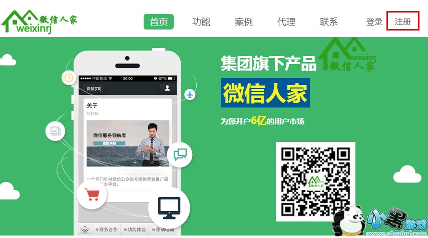 1、首先我们进入weixinrj网站:http://www.weixinrj.cn/,然后点击右上角的注册